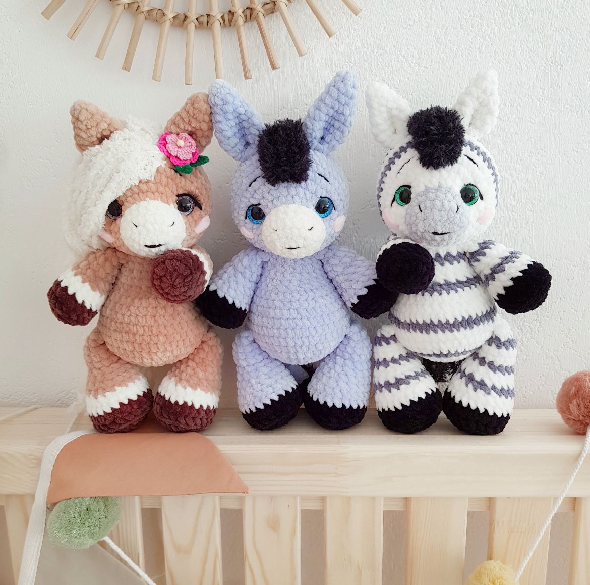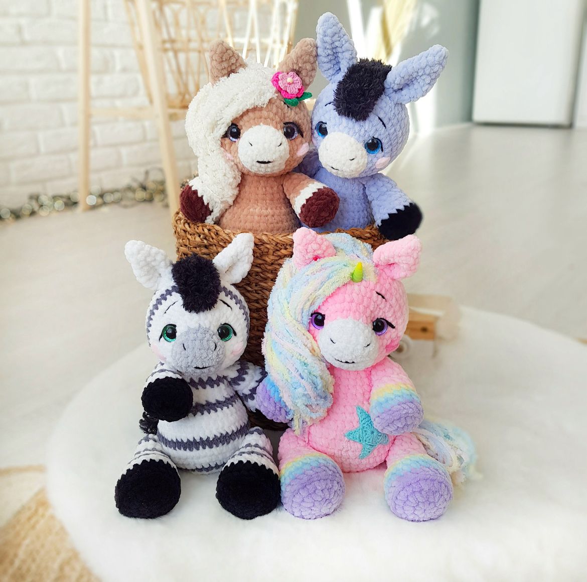 ✔️ Patterns for 4 animals: horse, donkey, zebra and unicorn